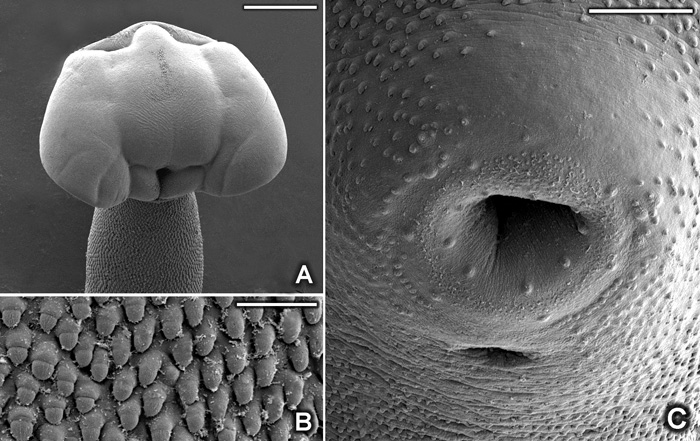 scanning electron microscopy two rings of sensory papillae observed